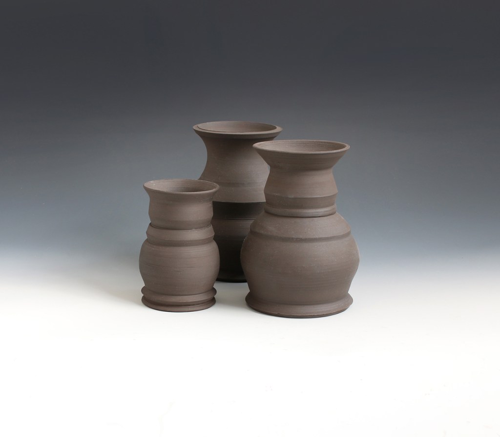Trio of Unglazed Vases, Black Stoneware, 2016.